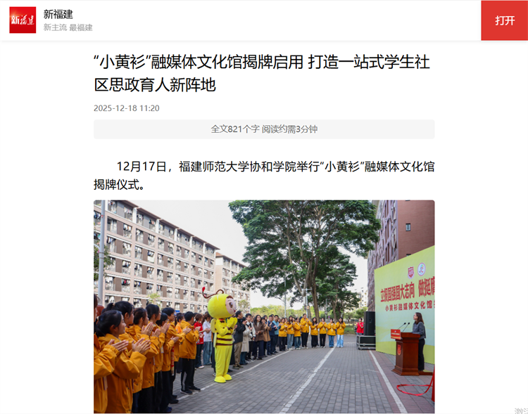 新福建:“小黄衫”融媒体文化馆揭牌启用 打造一站式学生社区思政育人新阵地