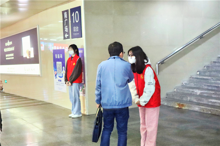 “上岗”后的志愿者们表现积极,在进出口站和检票厅帮助乘客解决多方面的困难。负责进出口站的志愿者们热情地给乘客们提供引导咨询。遇到有困难的乘客,志愿者们也不急不躁,耐心为其讲解。同时,检票厅的志愿者们也为过往乘客提供协助检票、提醒注意事项、行李看护等多项志愿服务。他们主动帮忙、热情服务,给过往乘客带去了温暖。