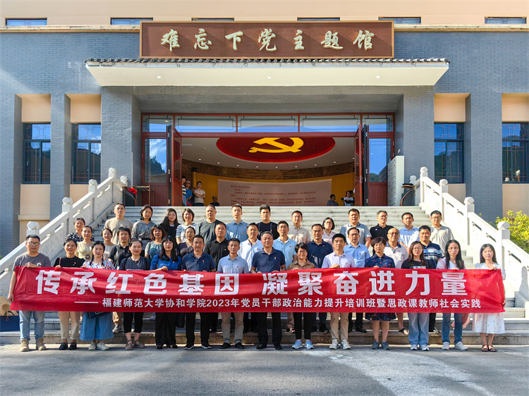 为推动学习贯彻习近平新时代中国特色社会主义思想主题教育走深走实,近日,学院“传承红色基因 凝聚奋进力量”2023年党员干部政治能力提升培训班暨思政课教师社会实践活动在宁德下党举行,学院中层以上领导干部、马克思主义学院思政课教师、院主题教育领导小组办公室成员等40余人参加。培训活动由宁德师范学院继续教育学院承办。
