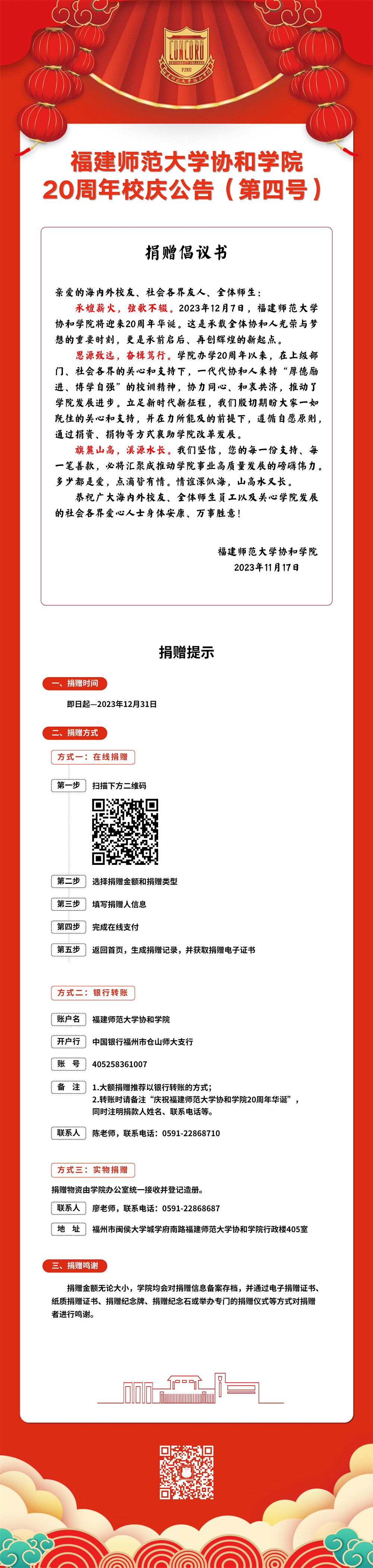 福建师范大学协和学院20周年校庆公告(第四号)