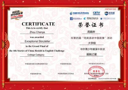 具体形式:选手撰写创意英语故事,并面向观众讲述故事,模拟舞台现场录制60-90秒(1-1.5分钟)的视频。(文稿撰写150-300词)