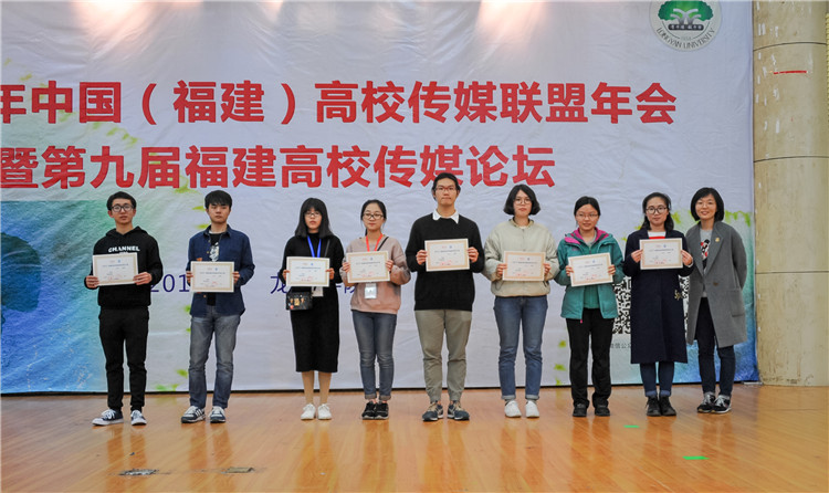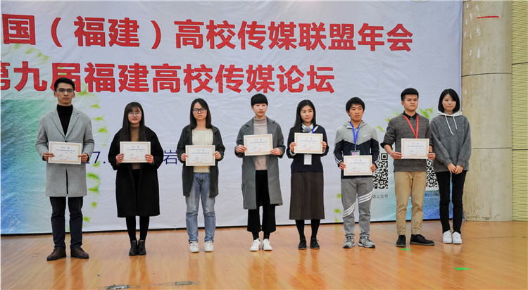 我院学生记者站代表(右2、3、4)领取2017中国高校新闻扶持计划(福建区域作品类)文字类奖 郑岚岚/摄