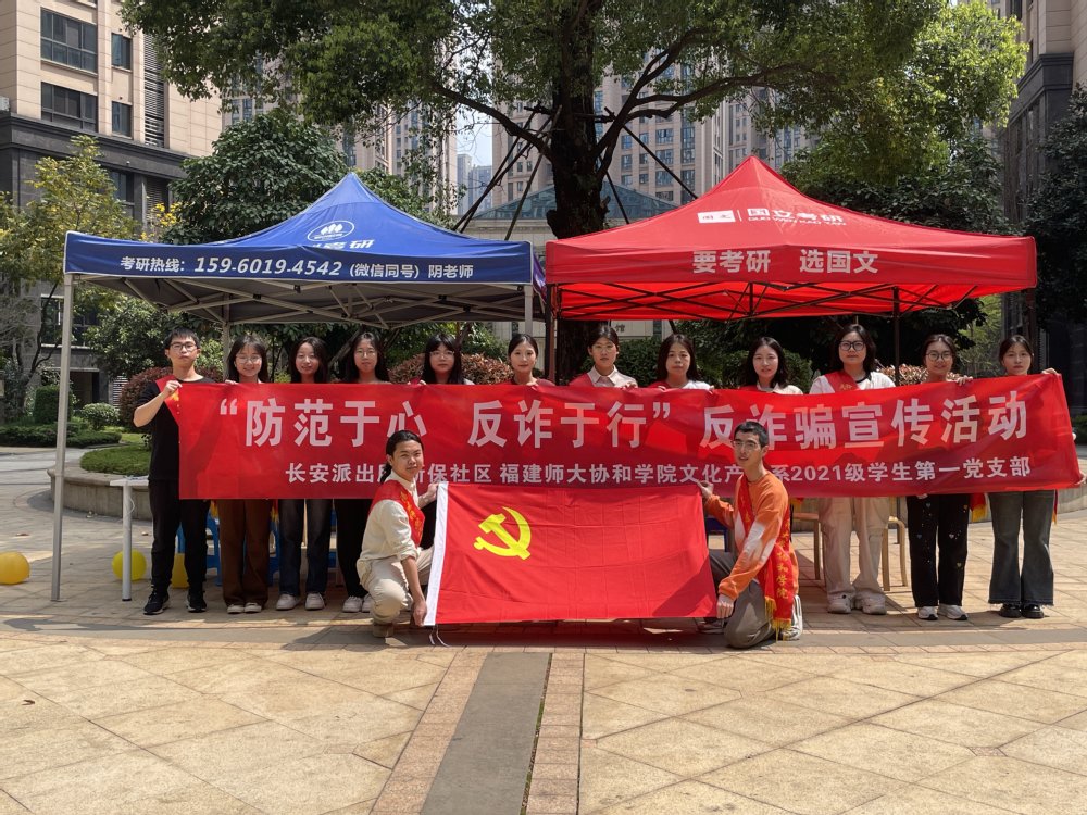 为进一步提高师生反诈意识,推动全民反诈,3月30日,文化产业系2021级学生第一党支部充分发挥党支部的战斗堡垒作用,走进社区开展“防范于心,反诈于行”主题党日活动,助力基层反诈宣传治理。
