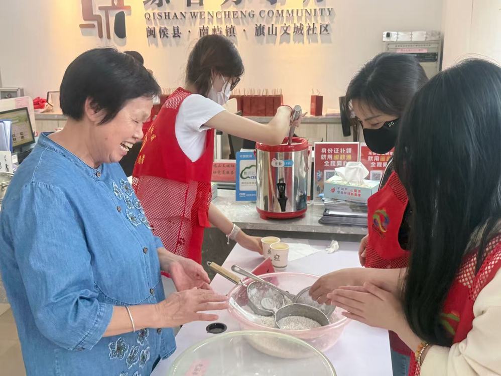 活动尾声,党员志愿者与社区工作人员共同为长者们送上重阳糕和菊花茶。软糯的重阳糕寓意步步高升,清香的菊花茶传递秋日养生理念。志愿者们细心分发食物,并与老人亲切交谈,询问生活需求。