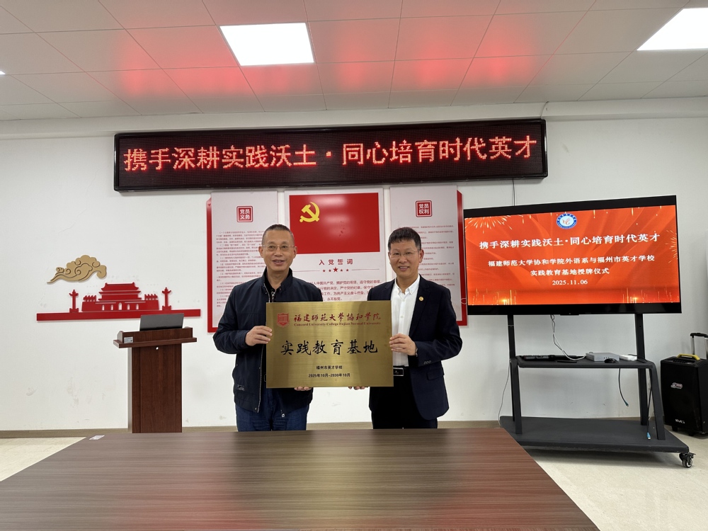 11月6日下午,外语系党总支与福州市英才学校党支部举行党建共建签约暨实践教育基地授牌活动。双方领导班子、部分党员及教师代表共同出席活动。