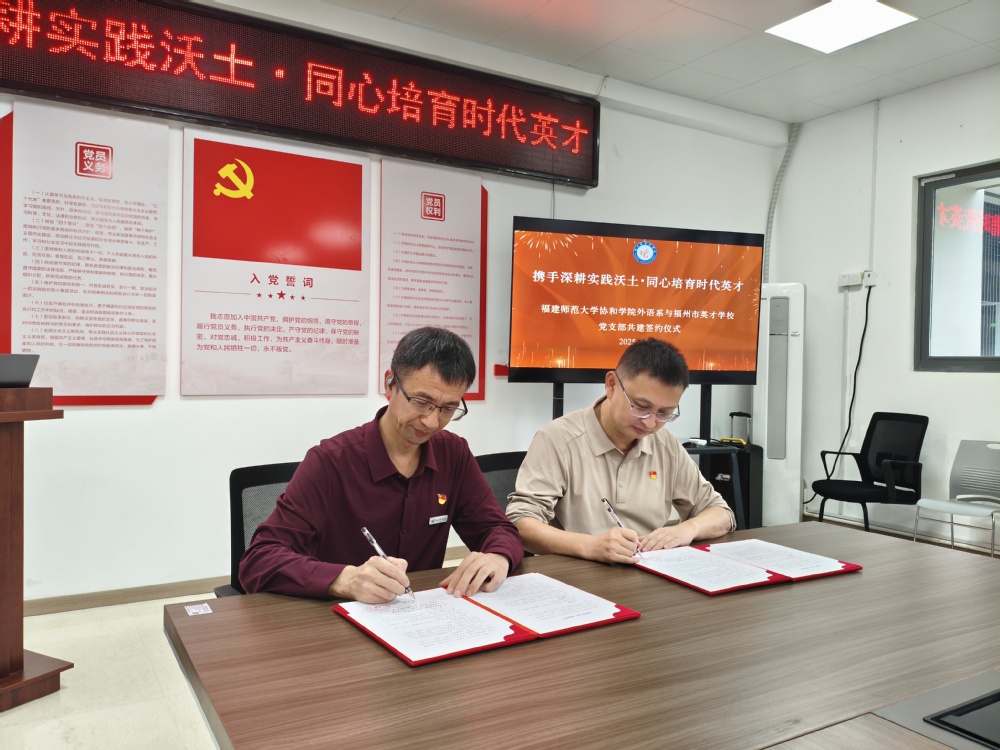 外语系党总支与福州市英才学校党支部举行党建共建签约暨实践教育基地授牌活动