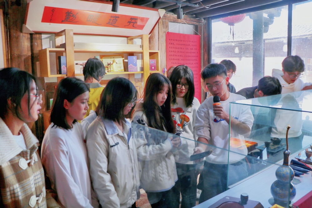 活动首站,支部成员走进了底蕴深厚的畲族村落——八井村。在畲族历史记忆馆内,八井村党支部书记雷可寿为同学们动情讲述了革命战争年代畲汉同胞并肩作战、生死与共的光辉事迹。一段段尘封的历史、一个个感人的故事,让大家深刻体会到伟大的民族团结精神如何在烽火岁月中经受锤炼、得到升华。
