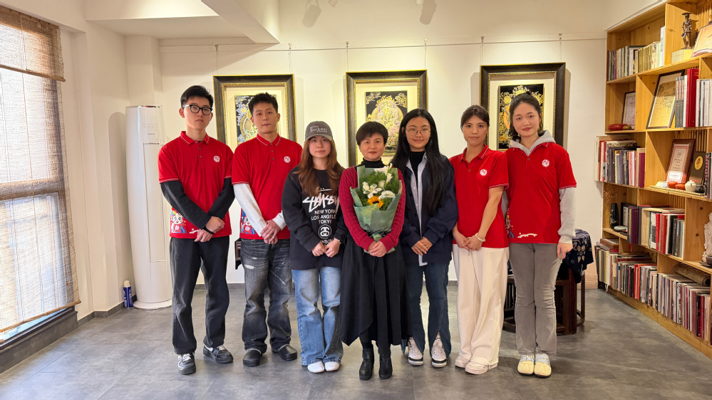 活动中,支部党员与陈冰老师深入交流,聆听她与漆画结缘、坚守、传承的动人故事,进一步理解无勾勒晕金漆画背后的文化内涵与艺术价值。在传承人的引领下,大家移步欣赏工作室中陈列的漆画精品,并走进工作间,近距离观看并亲手体验晕金漆画的制作流程,在一描一晕间感受非遗技艺的精妙与不易。
