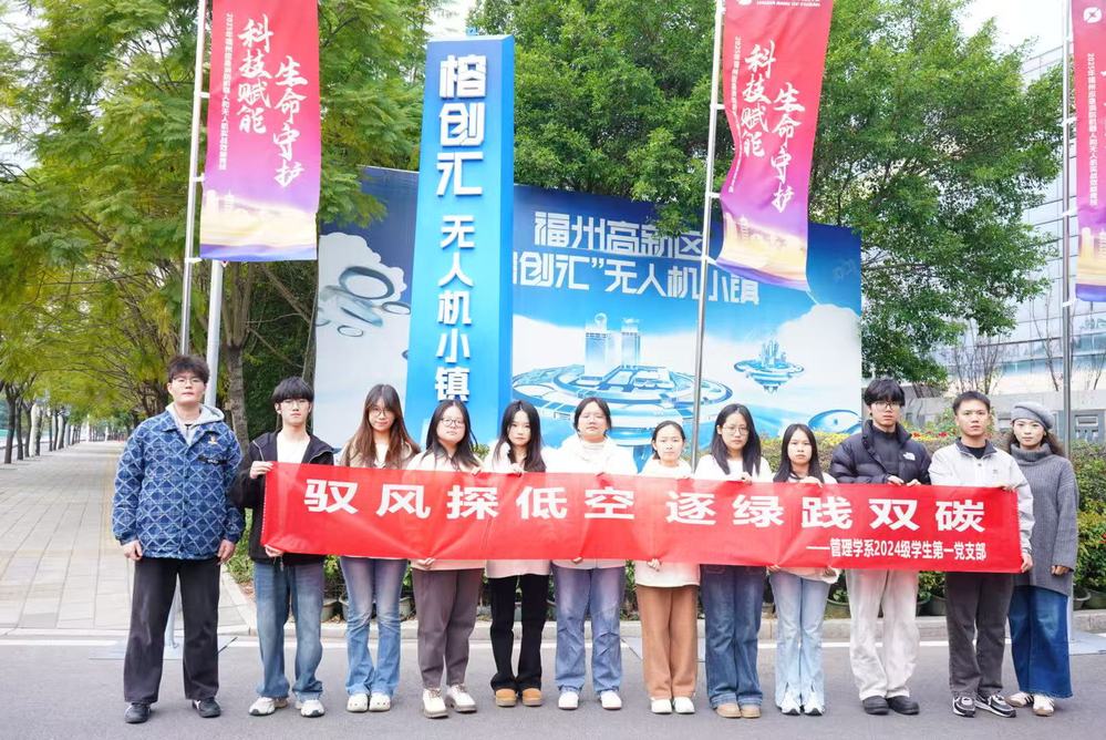为响应国家“碳达峰、碳中和”战略,进一步深化对低空经济与绿色发展深度融合的理解,促进管理专业知识与科技实践相结合,近日,管理学系2024级学生第一党支部前往福州榕创汇无人机小镇开展“驭风探低空,逐绿践“双碳”主题党日活动。