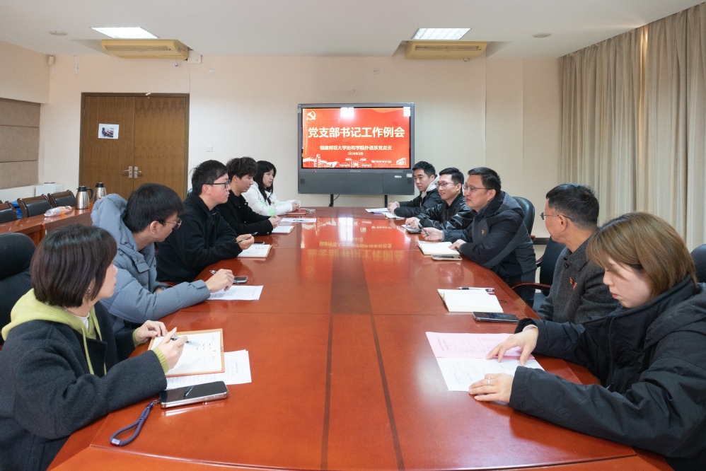 3月11日上午,福建师范大学协和学院外语系党总支在行政楼第四会议室召开新学期首次党支部书记工作例会。外语系党总支委员、各师生党支部书记参会,会议由系党总支书记陈跃聪主持。