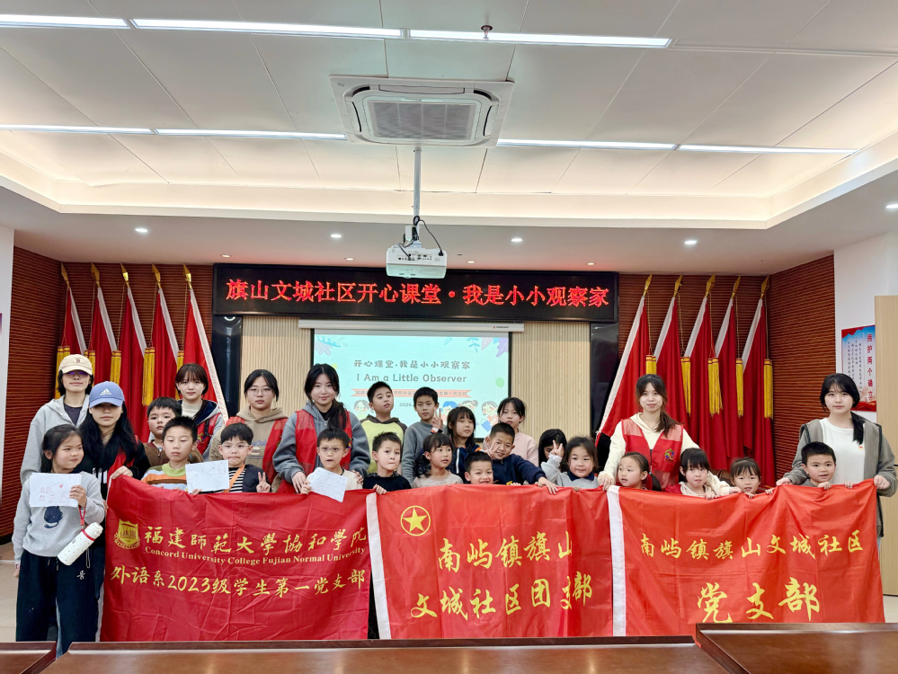 为丰富社区小朋友课余生活,提升对英语的学习兴趣,近日,外语系2023级学生第一党支部携手南屿镇文城社区开展“开心课堂・情绪小世界”趣味英语活动,将情绪表达与英语学习相融合。