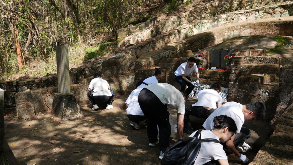 在庄严肃穆的萨镇冰将军墓前,全体党员整齐列队,肃立默哀,向先辈表达深切哀思。默哀毕,党员们依次敬献鲜花、深深鞠躬,以简朴而庄重的仪式寄托对将军的崇敬与追思。随后,大家分工协作,为墓园清除杂草、捡拾落叶,用身体力行的方式维护墓园环境,表达对先辈的崇高敬意。