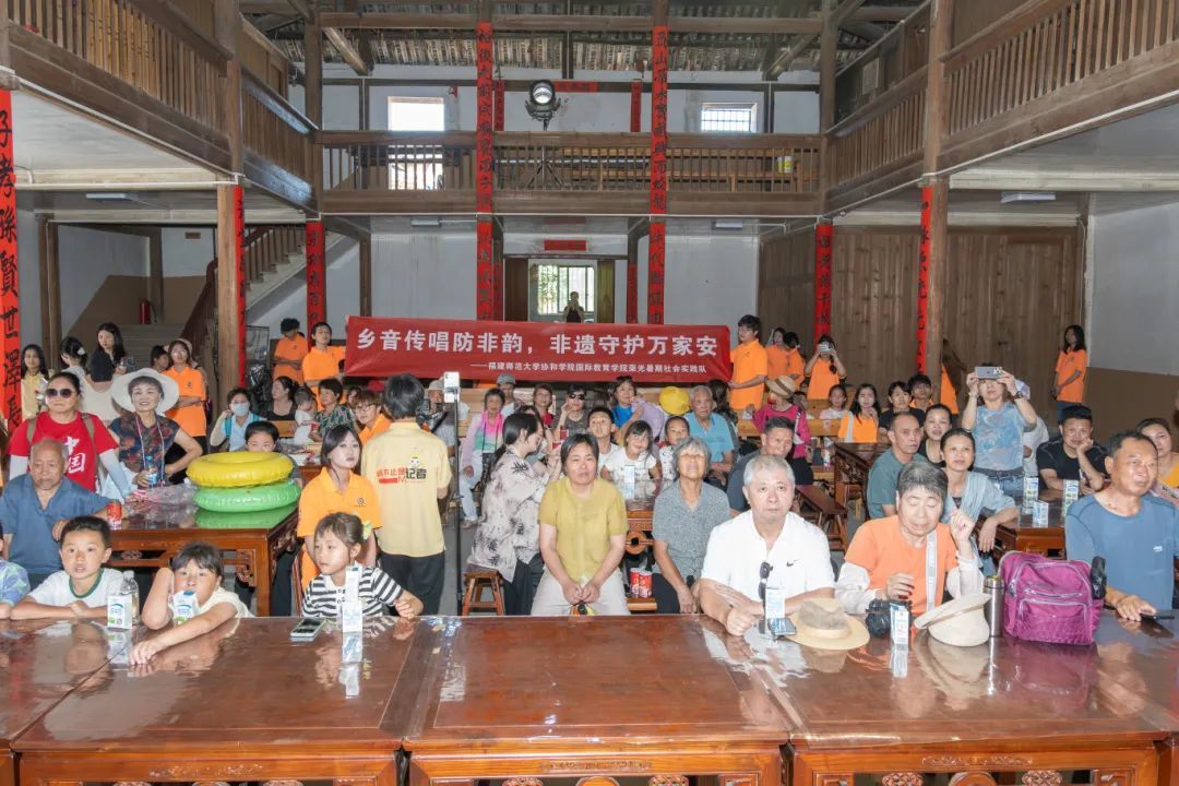 为深入学习贯彻习近平文化思想,组织青年学生深入基层,2025年7月3日,国际教育学院荣光暑期社会实践队在屏南县龙潭村开展“非遗 + 防诈”主题实践,通过结构化调研、支部共建签约、防诈骗主题展演等环节,将非遗传承与乡村防诈骗宣传、现代生活紧密融合, 为当地留守老人儿童送上了别具乡音特色且富有时代价值的文化服务。