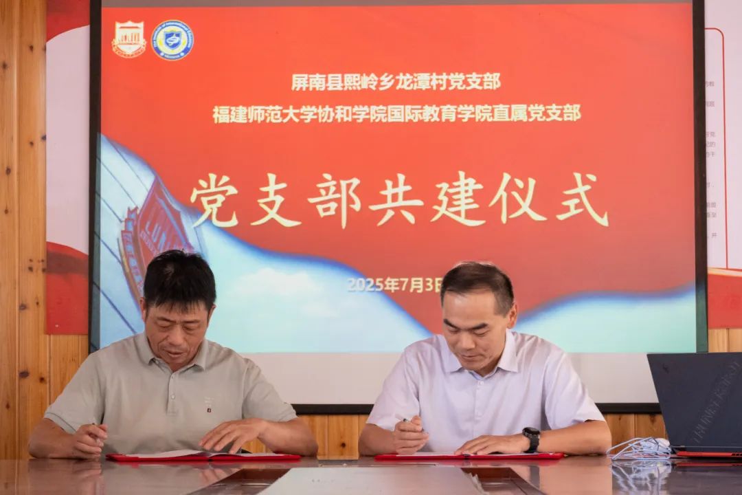 随后,国际教育学院直属党支部与龙潭村党支部开展党建共建,围绕《闽山闽水物华新——习近平福建足迹》等教材进行专题学习,并举行了校地党支部共建签约仪式,推动“党建+非遗保护”“党建+防诈骗宣传”融合。