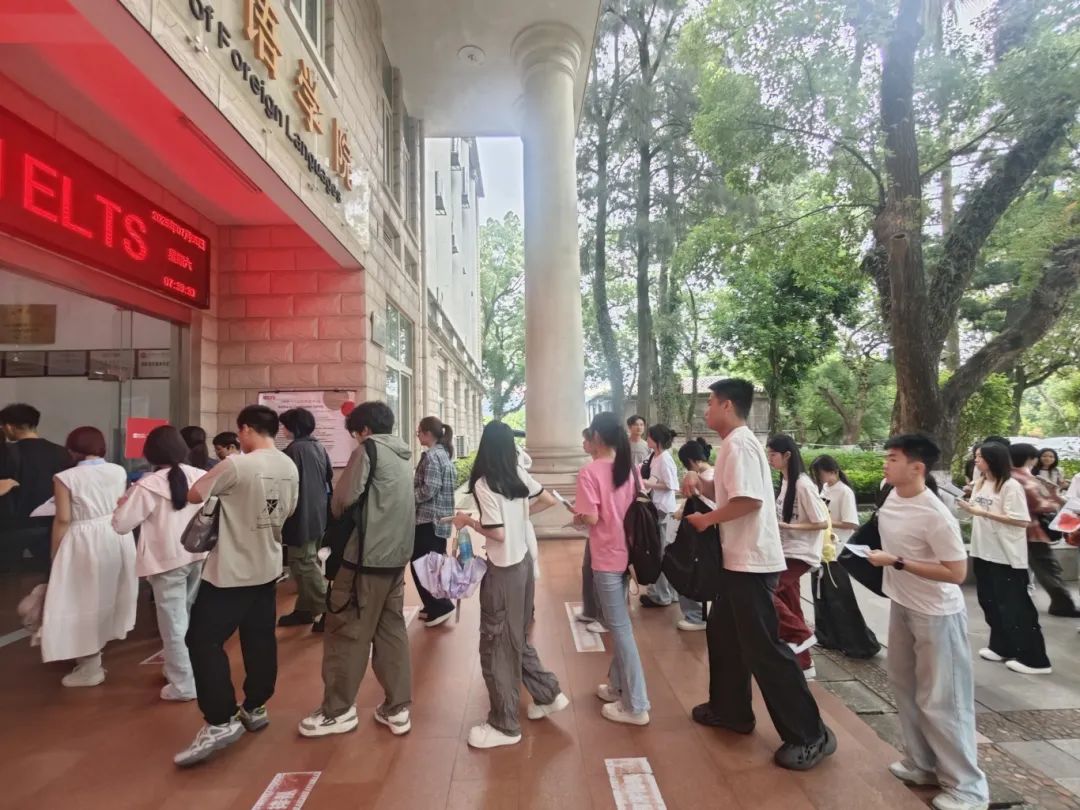 7月5日上午,福建师范大学协和学院国际教育学院组织2024级全体学生参加雅思考试。国际教育学院学生工作负责人陈跃聪、国际教育学院副院长王振兴、雅思教研室主任林抒月、辅导员李祁赴现场亲自迎接、鼓励考生,巡视考场情况。