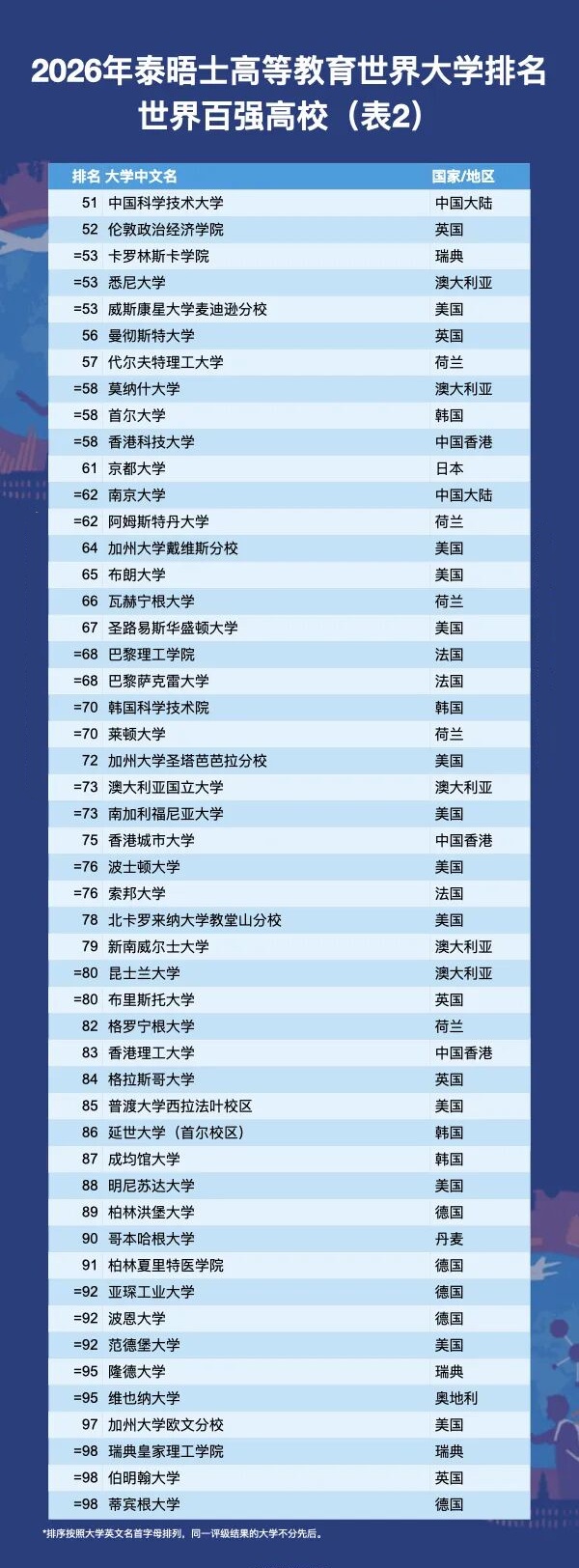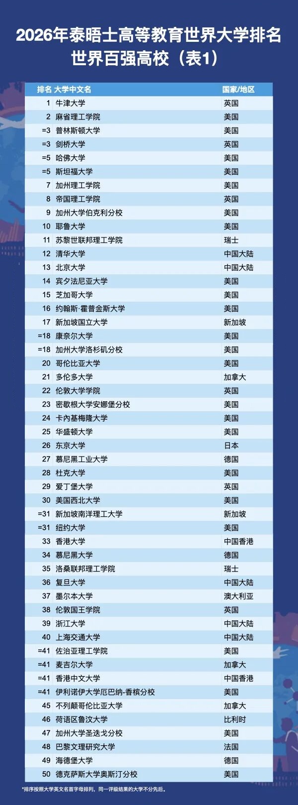 2026年泰晤士高等教育世界大学排名正式揭晓