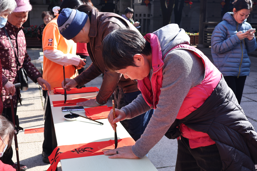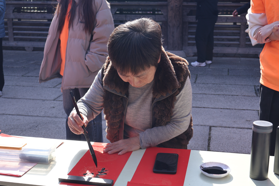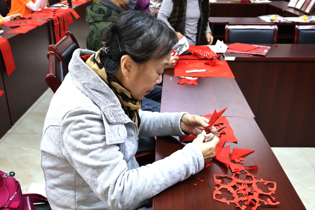 活动现场设置非遗体验区,开展福字剪纸、百福拓印、春联书写等互动项目。队员与居民共同制作年俗作品,在实践过程中传递传统技艺中蕴含的文化情感与生活智慧。活动还融合新春防诈宣传,结合“假红包”“网购陷阱”等高发案例,提升居民节日期间的安全防范意识。