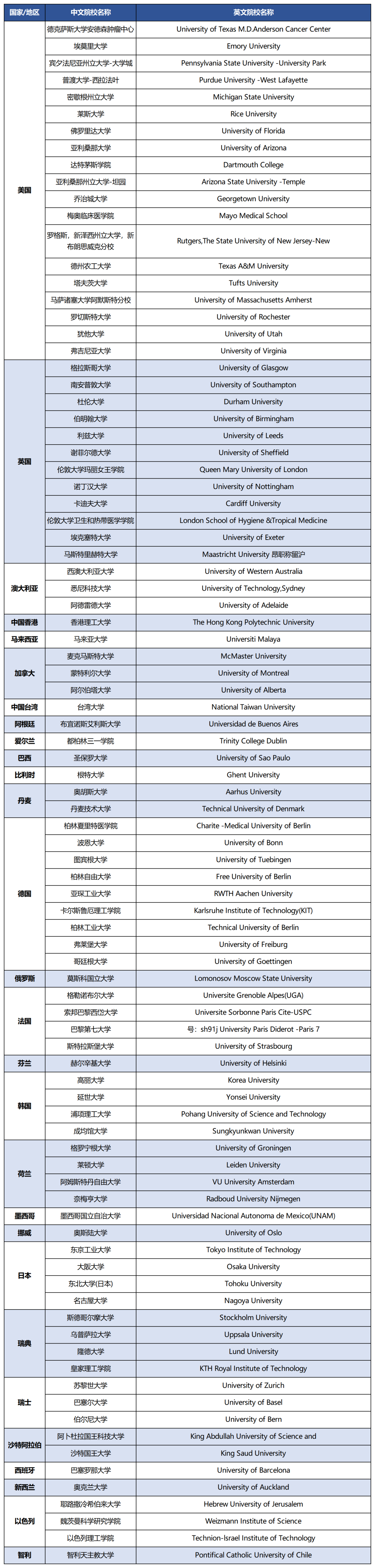 世界排名前51-100院校认定名单