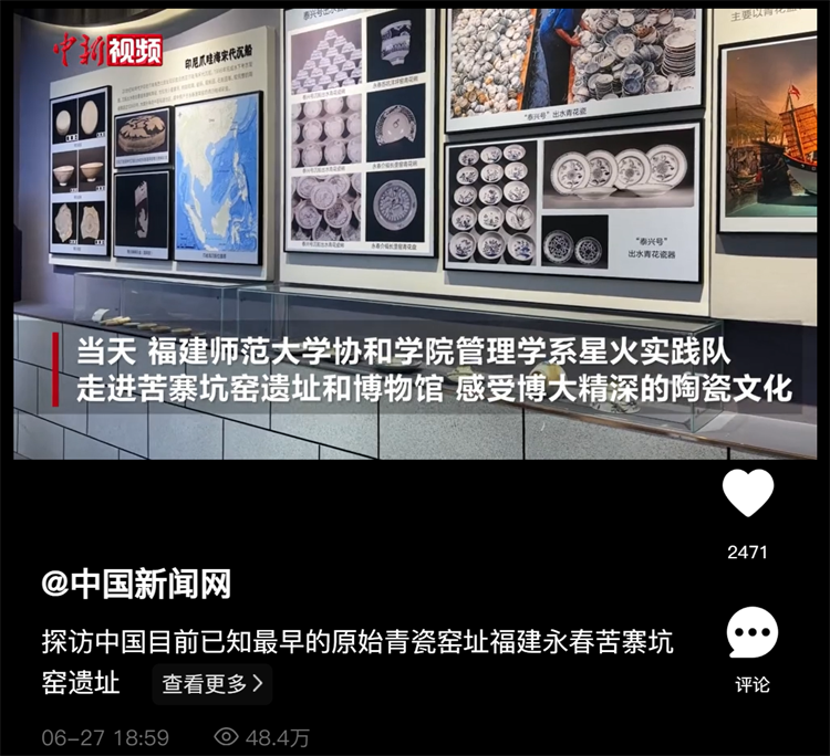 6月27日,中国新闻网报道我系“星火”实践队探访中国目前已知最早的原始青瓷窑址福建永春苦寨坑窑遗址,感受博大精深的陶瓷文化。