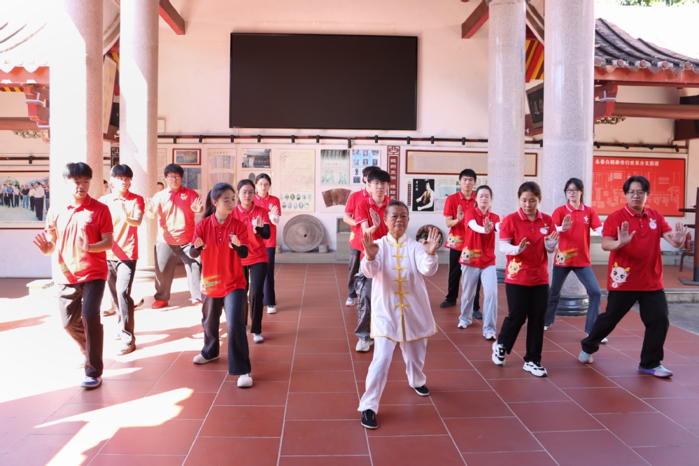 6月28日,实践队来到大羽村中国永春白鹤拳史馆。馆内丰富的图文资料和武术表演,生动展现了白鹤拳的历史渊源和国际影响力。在传承人周金盛的指导下,队员们学习了“双龙探海”等经典招式,亲身感受传统武术的独特魅力。“白鹤拳不仅是强身健体的武术,更蕴含着丰富的文化内涵。”周金盛表示,“希望通过年轻人的参与,让这项传统技艺焕发新的活力。”随后,实践队前往侨新红曲醋观光工厂,深入了解红曲醋的传统酿造工艺和现代化生产流程。队员们发现,永春红曲醋通过“非遗+产业”模式,将传统酿造技艺与现代科技的深度融合, 推动永春红曲醋走向更广阔的市场,成为乡村振兴的特色产业。