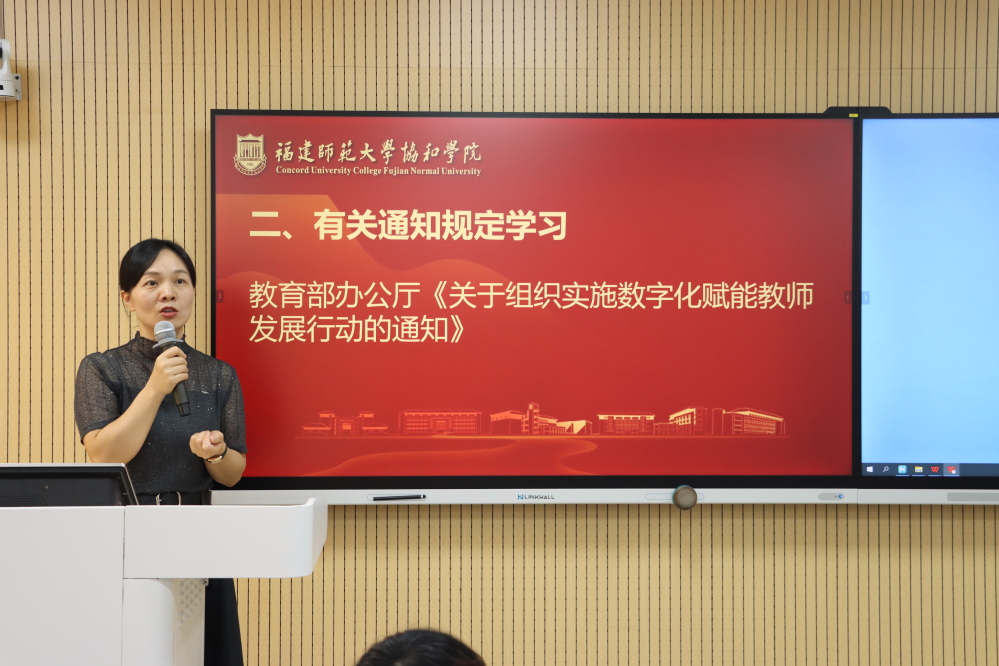 随后,苏秋红书记组织学习了教育部办公厅《关于组织实施数字化赋能教师发展行动的通知》精神。她强调,要积极响应国家教育数字化战略行动,推动数字技术与教师队伍建设深度融合,提升教师数字素养与应用能力,赋能教育教学改革创新,为培养新时代人才提供坚实师资保障。