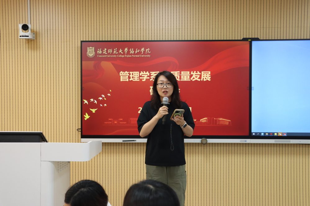 系主任雷金英在会议总结中,首先向踊跃建言献策的全系教职工表示衷心感谢。她深刻阐述了科学编制“十五五”规划对于我系精准把握历史机遇、有效应对时代变革、全面提升育人质量与学科核心竞争力的极端重要性。针对下一步规划编制与实施工作,雷金英主任明确提出三点要求:一是要优化结构,强化内涵建设,积极推动数智技术全面赋能专业转型升级,打造适应未来的学科专业新体系;二是要优化专业,创新教学模式,促进教学方法与学习方式与时俱进,全面提升人才培养能力;三是要树立王牌,勇于担当作为,集中资源培育和建设一批在省内乃至国内具有显著影响力和竞争力的品牌特色专业,引领我系整体办学水平的飞跃。
