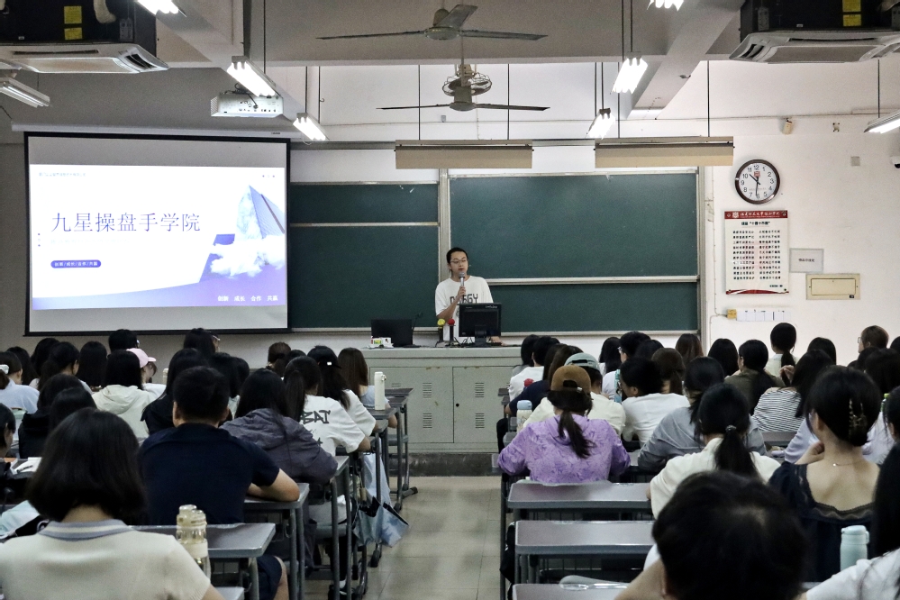 宣讲会上,九星操盘手学院总经理林智强以“企业实力+就业机遇”为主题,从企业概况、运营内容、核心数据与发展成果等多个维度,全面介绍了公司的发展历程、业务布局及行业竞争优势。针对毕业生普遍关注的职业成长问题,他重点阐释了企业为新人量身打造的“培训+实践”培养体系,该体系旨在帮助学生拓宽就业视野、提升职业技能。