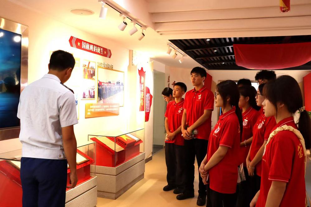 升旗仪式后,师生返回消防救援站,在消防员谢海金的引导和讲解下,深入了解了这个特殊集体的双重职责与光荣历史。谢海金介绍,该中队不仅肩负着五一广场日常及重大节日升降国旗的神圣使命,同时承担着国家5A级景区三坊七巷及周边区域的防火巡查、灭火救援和应急处突等繁重任务。随后,师生参观了站内的荣誉室,从一幅幅珍贵的历史图片、一段段感人的影像资料以及陈列的诸多奖牌锦旗,系统了解了国旗护卫队的发展沿革,更被消防救援站在历次重大抢险救援任务中不畏艰险、冲锋在前,为保护人民群众生命财产安全作出的卓越贡献和获得的崇高荣誉所深深震撼。