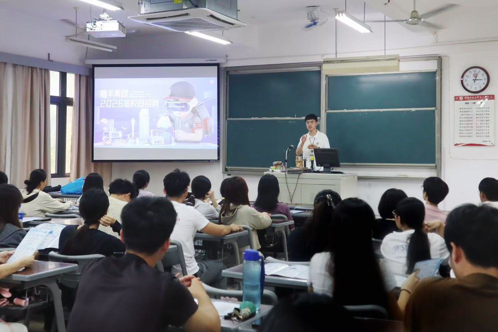 宣讲会上,顺丰集团福建地区校园招聘大使吴晓军担任主讲。他以“探秘顺丰”为引,系统介绍了顺丰集团的企业愿景、核心价值观与顺丰精神。随后,通过“SFer的进阶之旅”等环节,吴晓军结合顺丰的发展历程,深入浅出地讲解了其在供应链综合物流领域的战略布局、行业领先的科技实力,并重点阐释了独具竞争力的“天网、地网、信息网”三网合一的智慧物流生态系统。针对毕业生普遍关注的职业发展路径与求职焦点,他详细解读了顺丰为管培生及新员工定制的“培训+实践”成长体系、此次招聘的核心岗位需求以及多元化的薪酬福利政策。生动的案例与详实的介绍,有效增进了同学们对企业的了解,提升了相关岗位的吸引力。在“校园大使互动”和“我在校招等你”环节,现场交流氛围热烈。