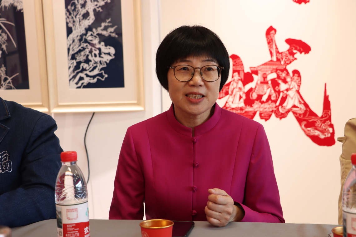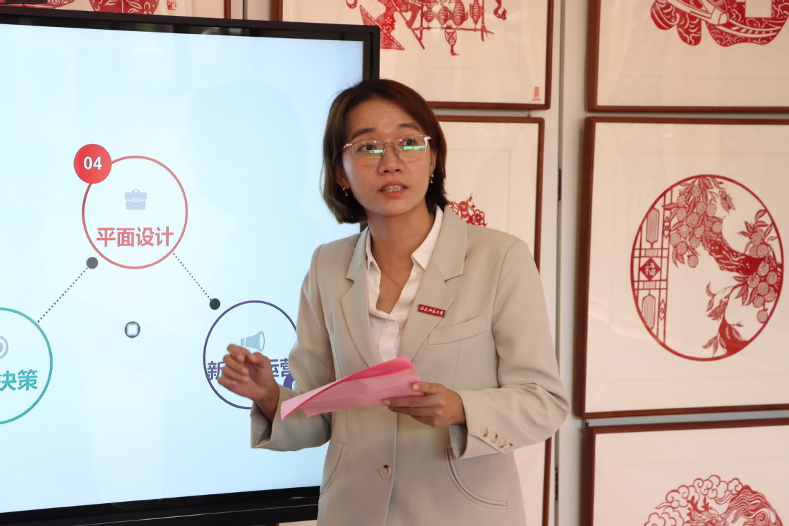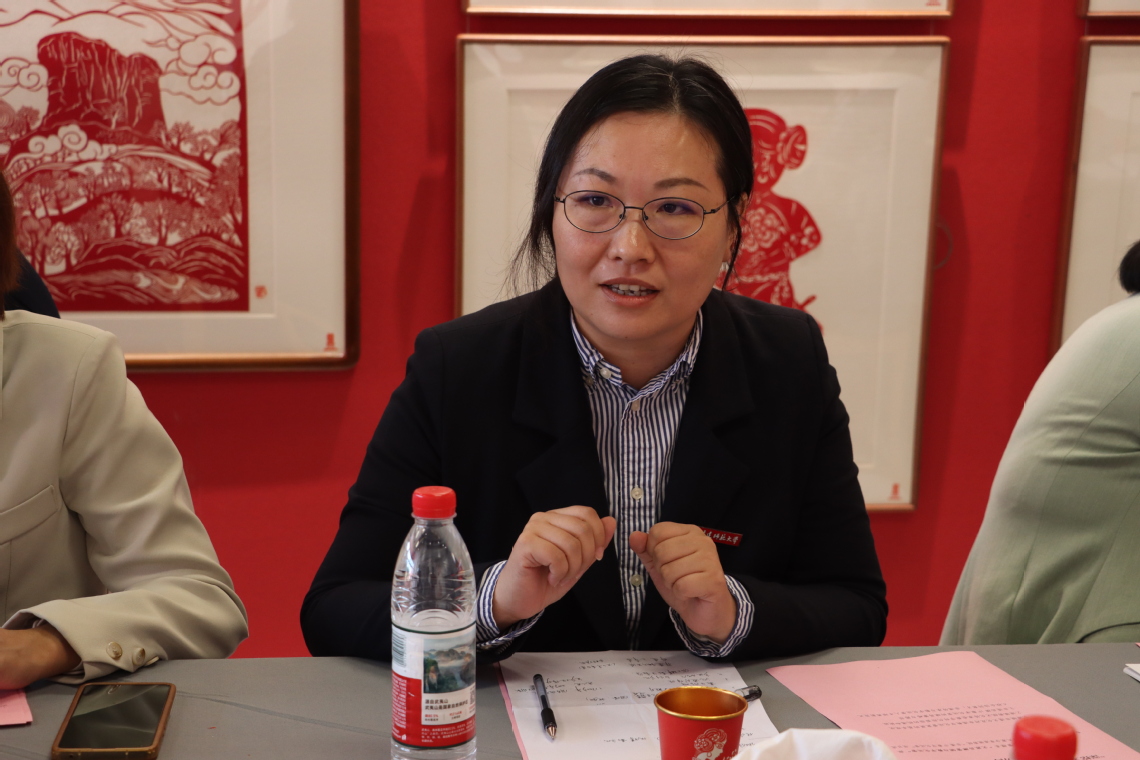 主题座谈会上,我系教工党支部组织委员、“文旅品牌营销与数字化运营”微专业负责人翁清清,展示了“非遗IP数字化运营”项目的实施与规划。与会嘉宾围绕非遗数字化保护、创新发展等关键议题进行了深入交流。浦城县文学艺术界联合会主席傅让兴指出,非遗传承需要情怀支撑,要通过数字赋能推动非遗产业化发展,充分发挥地方资源优势。浦城县巧剪文化传播有限公司首席文化官李增全表示:“实现从非遗的保护到文化产业的兴盛,关键在人才,既需培育传承技艺的‘守艺人’,也需培养懂市场、善创新的‘开拓者’”。国家级非遗传承人周冬梅提出,剪纸技艺在保留传统特色的基础上要不断创新,开发符合当代审美需求的文创产品,积极探索非遗技艺在新时代的传承路径。