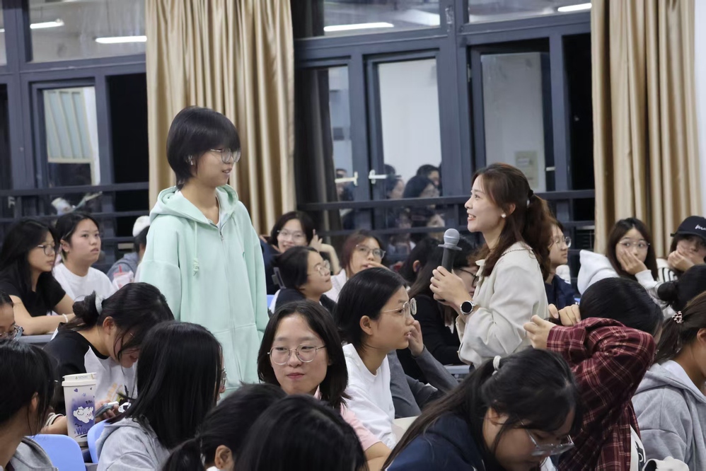 在互动答疑环节,现场学生踊跃提问,两位校友一一耐心给出建议,有针对性的解答了同学们的困惑。