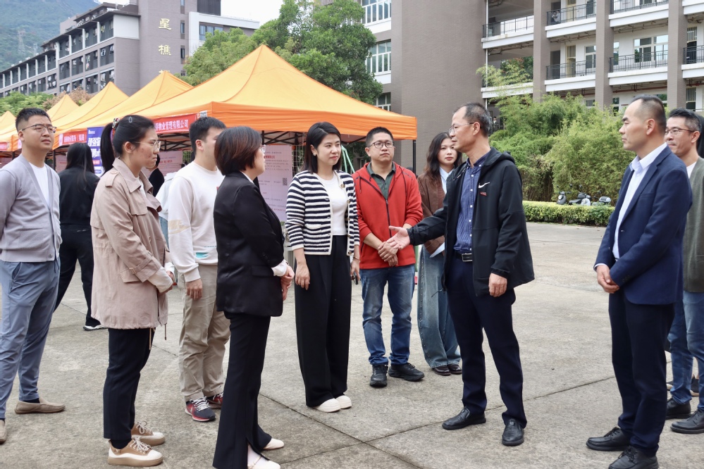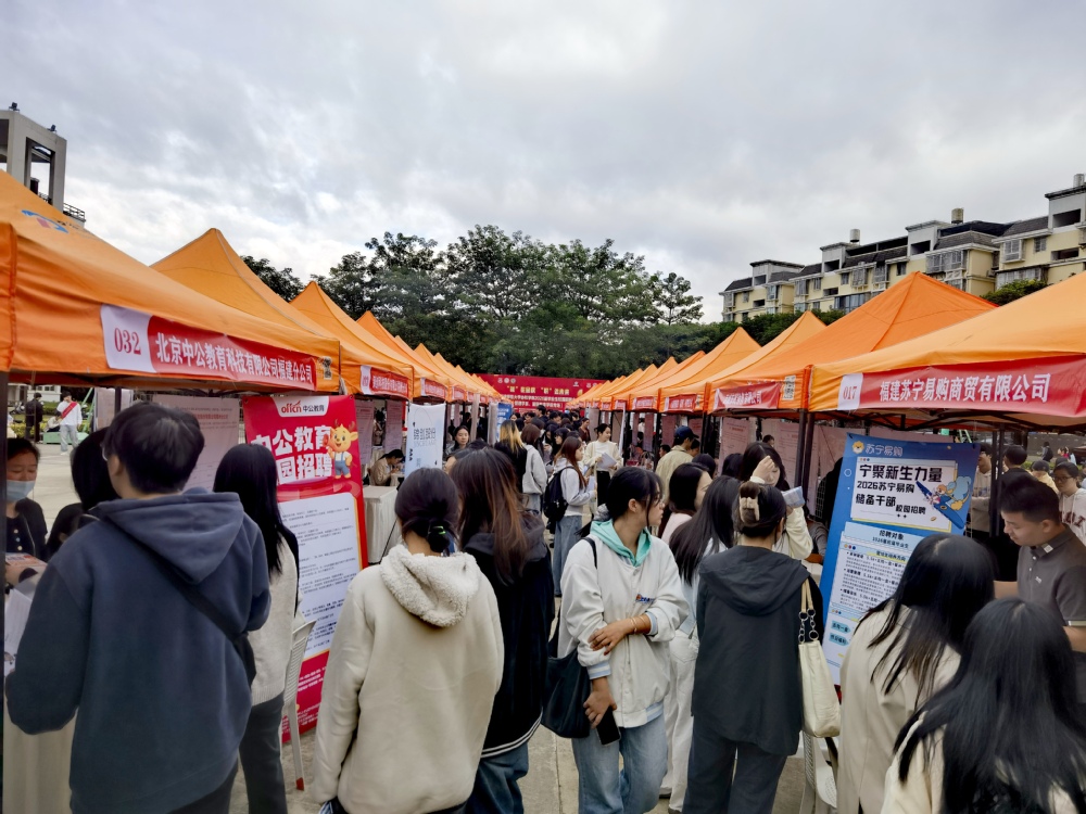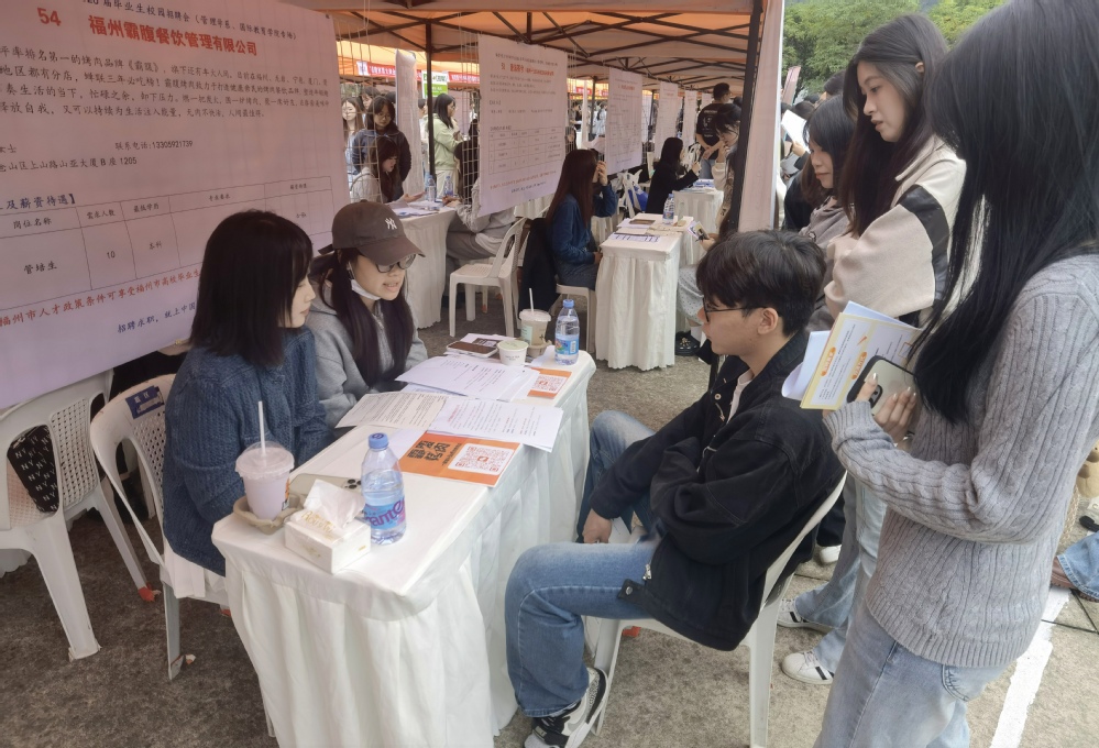 11月5日下午,我系和国际教育学院联合福州市仓山区人力资源和社会保障局在协和篮球场举办2026届毕业生校园招聘会。本次招聘活动采用“现场招聘+直播带岗”的方式进行,吸引了太平人寿保险有限公司福建分公司、福建东百集团股份有限公司、福建苏宁易购商贸有限公司、盛丰物流集团有限公司等59家企业入校招聘,共提供了财务助理、内外贸业务员、采购助理等133个职位类别,招聘需求人数超过1000人。