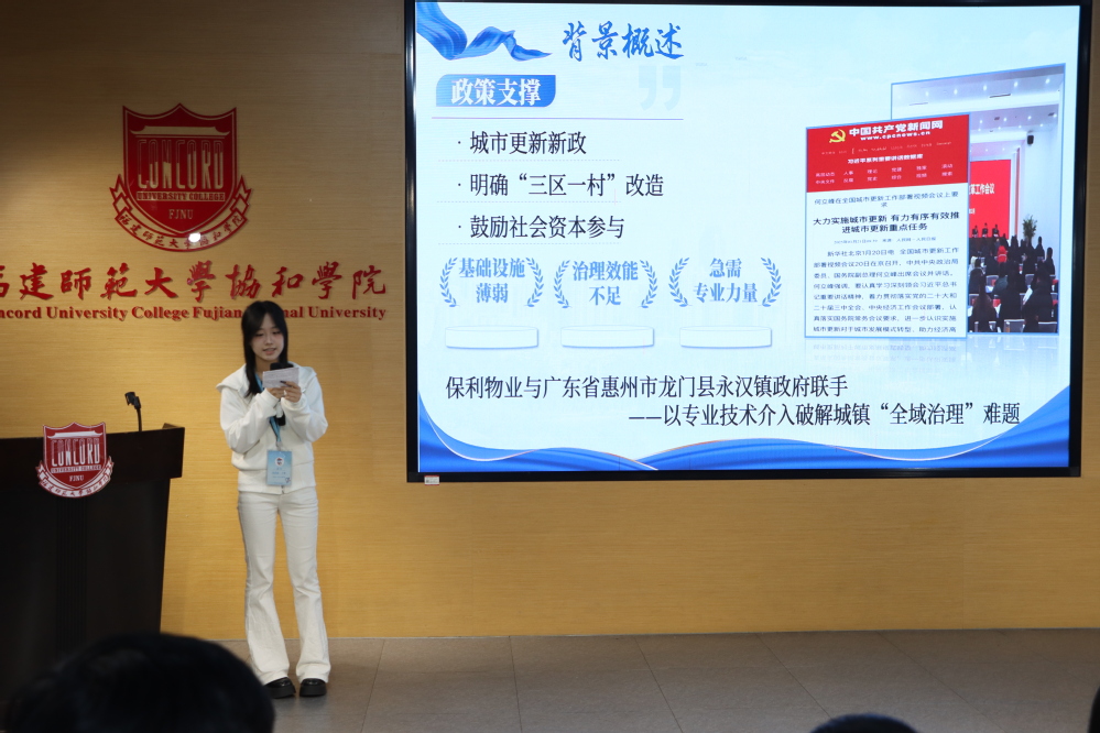 展示过程中,多支团队将目光投向了社区老龄化服务适配、公共设施老旧更新、物业服务收支透明化等居民关切的实际问题,并提出了颇具针对性的解决策略。更有团队结合城市更新趋势与智慧科技赋能视角,探索物业服务创新模式,通过生动的现场讲解与互动,充分展现了当代学子发现问题、分析问题与解决问题的综合能力,现场学术交流与创新思辨氛围浓厚,深刻体现了大赛“以赛促学、以赛促践”的办赛宗旨。