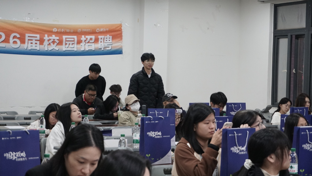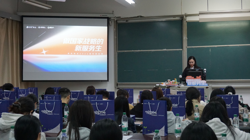 11月12日下午,我系在河西B1-201教室成功举办保利物业2026届校园招聘宣讲会。保利物业福建公司党群人力部负责人康占中、人力部高级经理郑舒龄、招聘专员陈佳梅、林晨,以及福州保利香槟国际客户主任黄俊达共同出席本次活动。现场吸引了来自物流管理、物业管理、市场营销等专业的60余名2026届毕业生的参与。