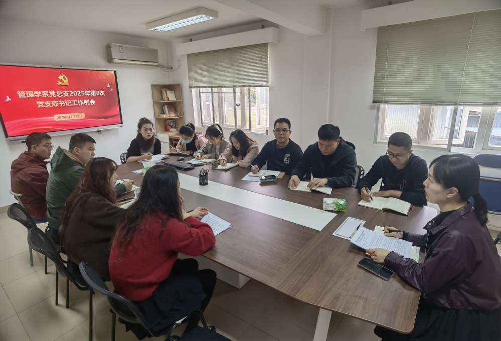 2025年12月12日上午,我系党总支在创业园E栋204会议室召开2025年第8次党支部书记工作例会,系党总支书记苏秋红、党总支委员、各党支部书记参加会议。