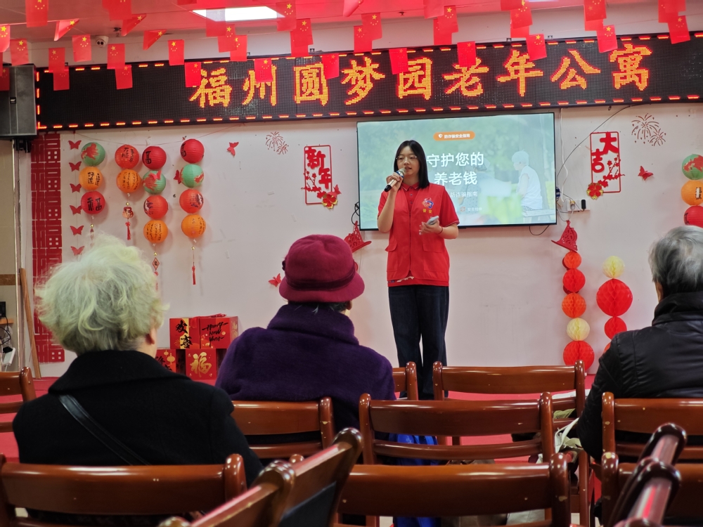 为深入弘扬中华民族孝亲敬老传统美德,以实际行动回应“老有所养、老有所乐、老有所安”的民生关切,1月15日下午,我系星火党支部联合福州市晋安区飞飞鱼志愿服务中心,共同走进圆梦园养老院,开展“情暖元宵·防诈同心”主题党日活动,用青春担当为银发长者们送上一份特殊的新年祝福。