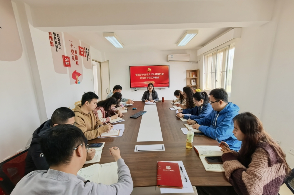 2026年3月23日下午,我系党总支在创业园E栋204会议室召开2026年第1次党支部书记工作例会,系党总支书记苏秋红、党总支委员、各党支部书记参加会议。