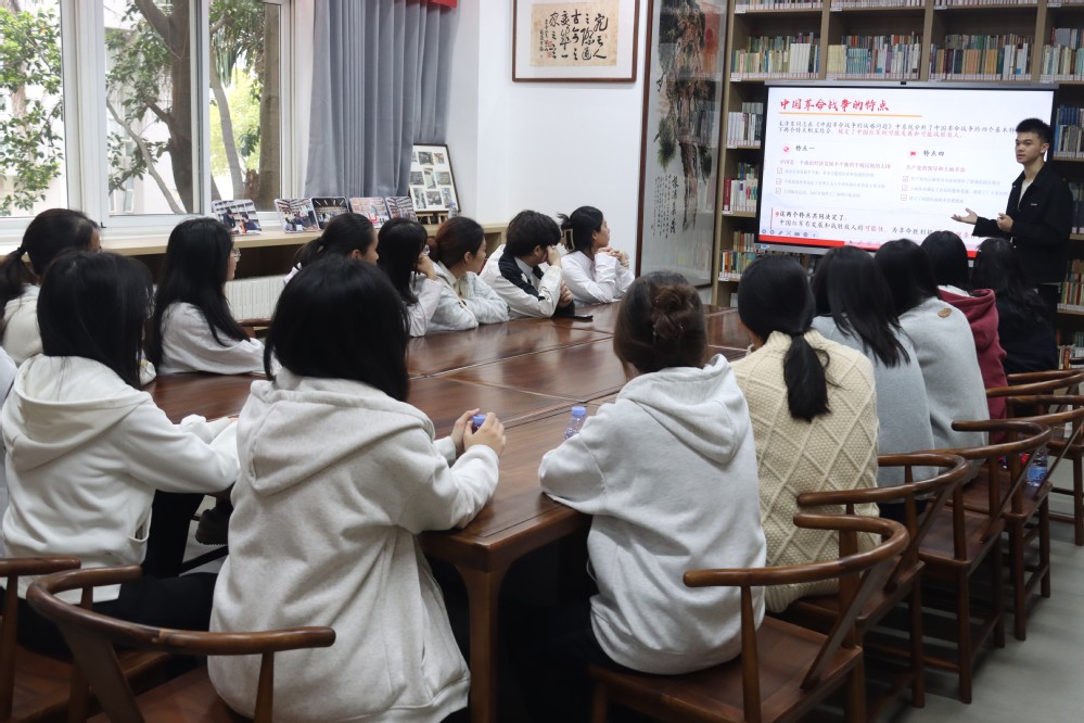 活动最后,我系校友、福建师范大学马克思主义学院研究生方宇捷为全体党员讲授专题党课。他结合自身考研求学经历,引导党员们将革命战争的战略智慧运用到学习、工作与个人成长中,在知行合一中锤炼信仰纯度、激发奋进力量。在交流环节,全体党员踊跃参与互动交流,有考研意向的同学重点围绕考研学习时间合理安排、备考规划制定、复习效率提升等迫切关心的问题向方宇捷学长请教,学长结合自身考研历程逐一答疑,分享实用备考方法与成长心得,现场氛围热烈融洽,让党课学习成果进一步转化为助力同学们成长成才的实际指引。
