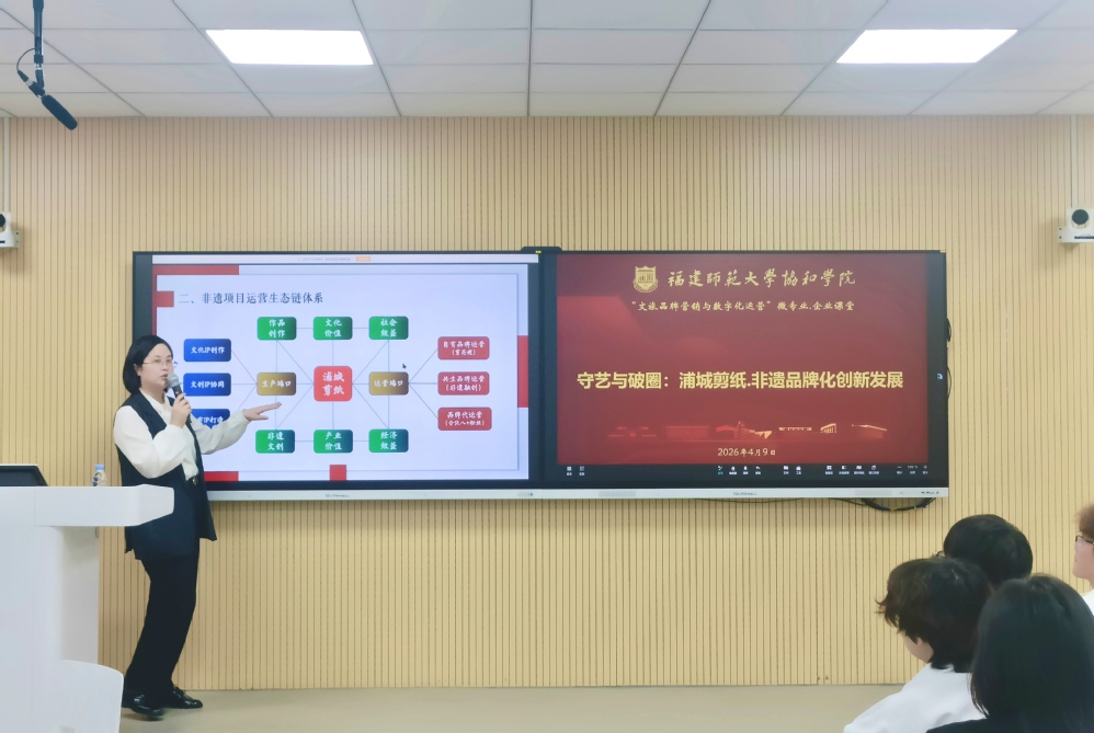 4月9日,我系“文旅品牌营销与数字化运营”微专业举办行业专家进课堂活动,浦城剪纸代表性传承人、巧剪文化传播有限公司品牌运营总负责人陈煜华女士,受邀做“守艺与破圈:浦城剪纸非遗品牌化创新发展”专题讲座。讲座由管理学系教师翁清清主持,“文旅品牌营销与数字化运营”微专业全体学员参加。