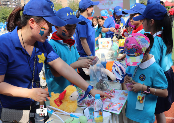此次演出以欢脱的啦啦操作为开场舞,舞蹈结束后,同步进行了爱心启动仪式。接下来由星星孩子及普校学生带来《星孩》、《中国龙》、武术朗诵表演手语合唱等也获得了孩子们热烈回应。我系志愿者身穿玩偶服装,与小朋友们热情互动,可爱俏皮的玩偶形象吸引了不少孩子的注意力。时间一分一秒地流逝,此次活动在与小朋友嬉戏玩闹中不知不觉结束了。