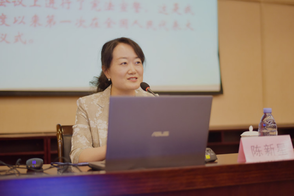 开班式后,由陈新星博士为大家带来培训班第一讲——学习2018年全国两会精神。陈新星以宪法宣誓制度及其法制教育意义为主题,为在座同学普及了有关宪法知识。