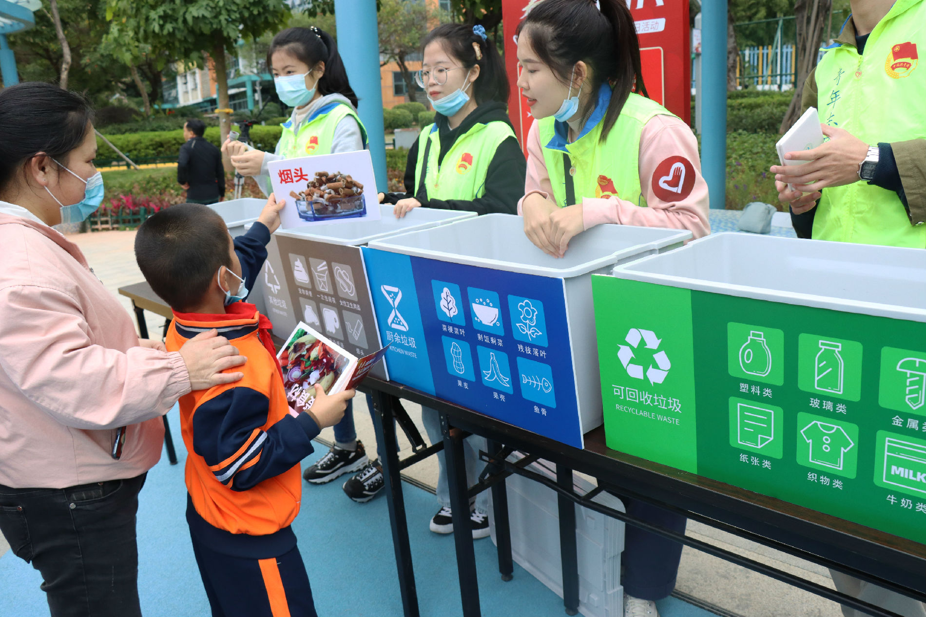 父母陪伴孩子进行垃圾分类 许静妍 摄