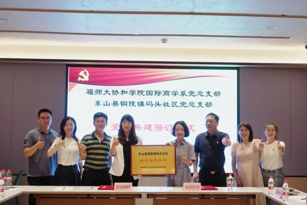 此外,国际商学系党总支部与东山县铜陵镇码头社区党总支部举行党建共建签订仪式。码头社区党总支书记张贵双与国际商学系党总支书记陈婷共同签署合作协议,并进行授牌仪式。