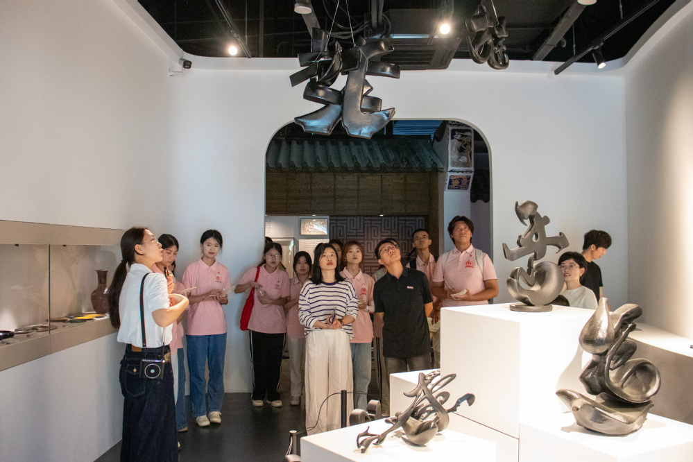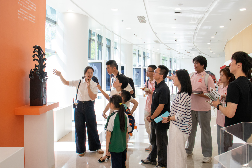 当天下午,实践队沉浸于福州市文化馆,在艺术共享空间领略龙舟文化及福州非遗艺术品的创新表达,在非物质文化遗产展厅“指尖山海”、“闽韵新声”、“守艺福见”,通过多元互动体验,感受闽都文化“见人见物见生活”的活态传承魅力。此行深化了队员们对“文化兴国运兴,文化强民族强”的实践认知。