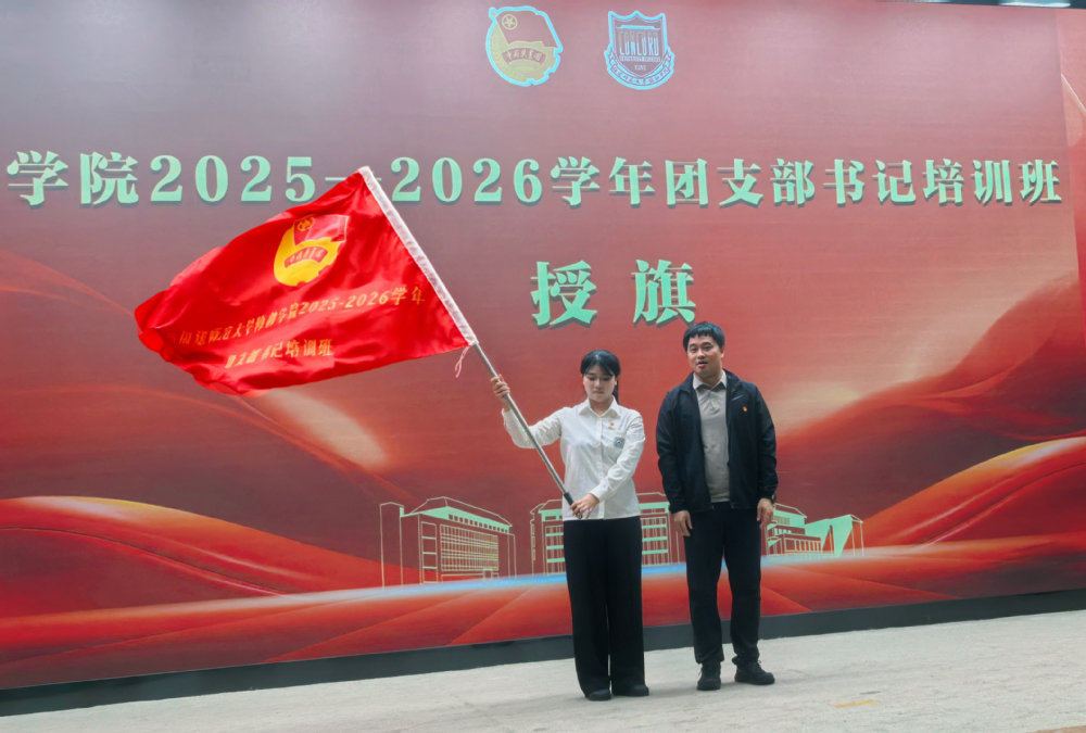 随后进行了“2025-2026学年团支部书记培训班”授旗仪式、颁发2024-2025学年团支部书记培训班优秀学员证书、重温入团誓词。