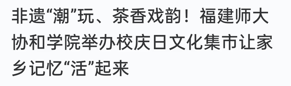 中国教育在线报道:非遗“潮”玩、茶香戏韵!福建师大协和学院举办校庆日文化集市让家乡记忆“活”起来 强国号发布内容