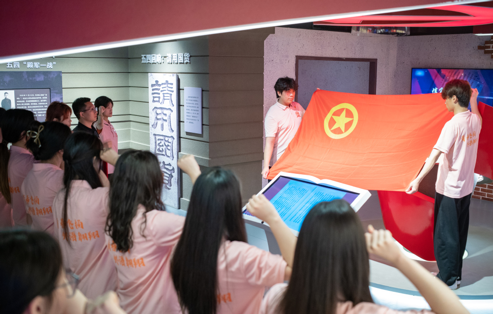 在庄严肃穆的五四运动展区,全体新团员面向团旗,高举右拳庄严宣誓,誓言铿锵有力,彰显新时代青年的责任与担当。宣誓完毕,新团员代表与老团员代表依次发言,表达了坚定理想、勤学奋进、不负时代的决心。