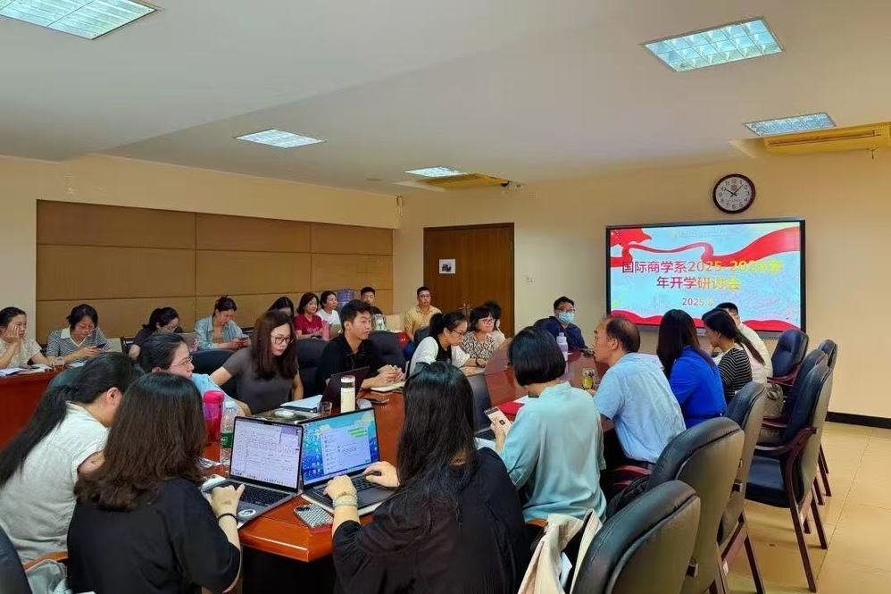 8月29日上午,国际商学系召开了2025年暑期工作研讨会,系领导及全系教职工参加会议。
