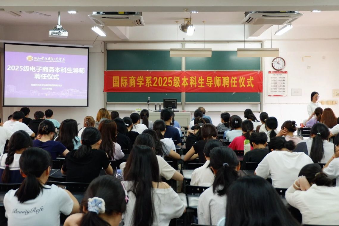 2025年9月10日,以“电商新程,导师护航”为主题的电子商务专业介绍暨本科生导师聘任仪式在河西教学楼A3-402隆重举行。国际商学系领导、教研室教师代表与电子商务专业全体大一新生齐聚一堂。此次活动不仅拉开了新生专业学习的序幕,更开启了电子商务专业在人才培养模式上“精准育人、全程护航”的新篇章。
