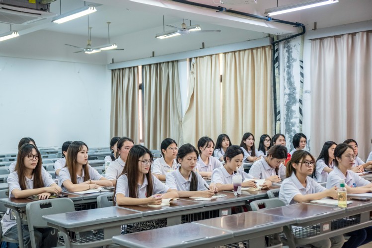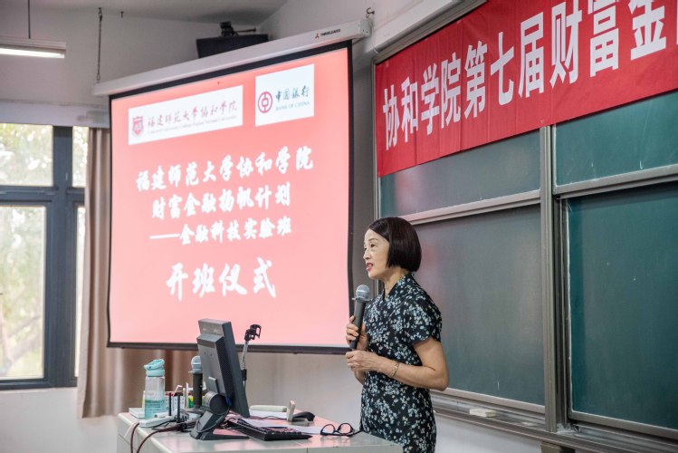 在湖前广场完成合照后,开班仪式正式启动。李碧珍教授代表院系发言。她指出,本届特色班重点打造“金融+科技”课程、“双导师”机制、多维实践平台三大特色,并寄语同学们要夯实基础、提升能力、培育创新思维,在中国银行仓山支行、华福证券、太平寿险福建分公司、上海惠澄公司四方协同育人模式下成长为高素质金融科技人才。